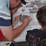 Members of Midas Gold’s Boise team, Ken Assmus, Todd Drage, Sam Reid and Jeff Root, participated in the Idaho Museum of Mining and Geology’s “Rock Party” event on Sunday September 14. In addition to the many other hands-on activities for kids, the Midas Gold team conducted a fossil hunt. Everybody got their own bag of phosphate fossils that they could search through and identify different types of shells, shark teeth, coral and other fragments from the ocean floor from more than 15-20 million years ago.