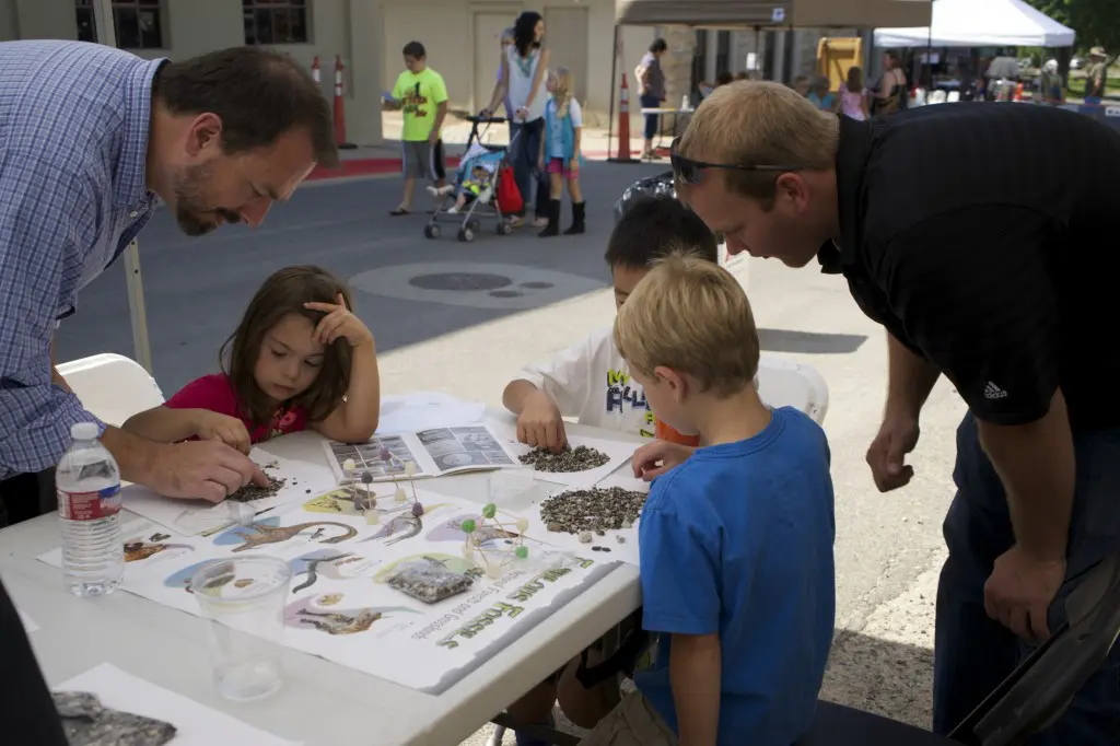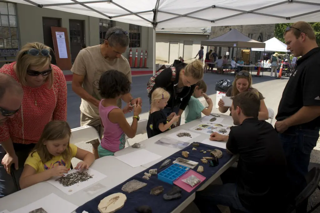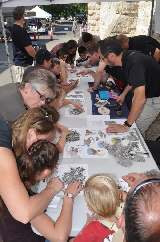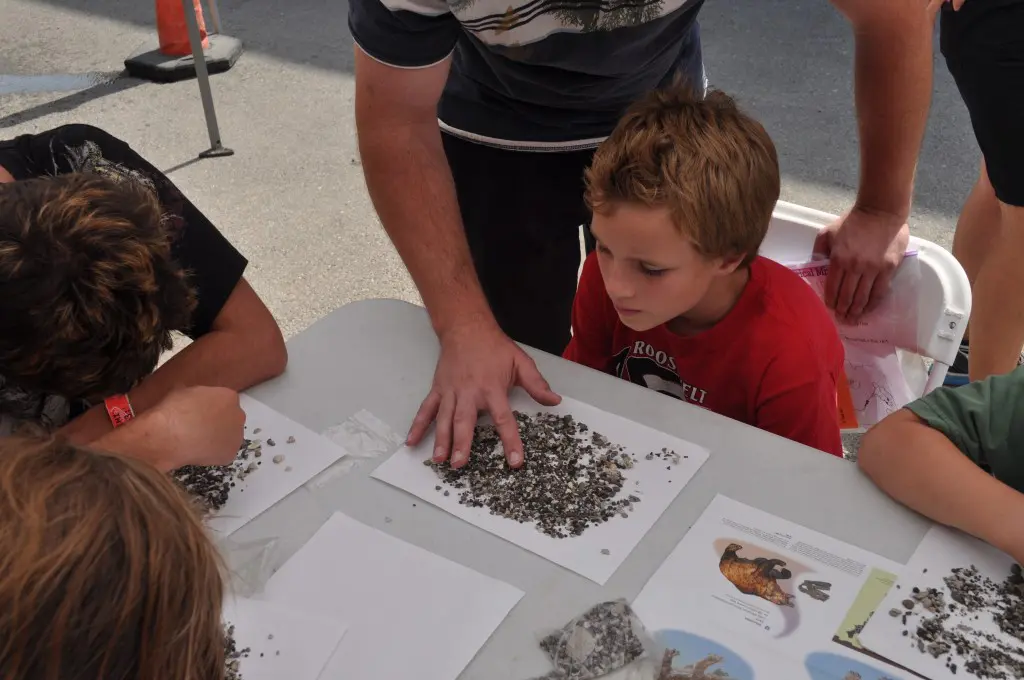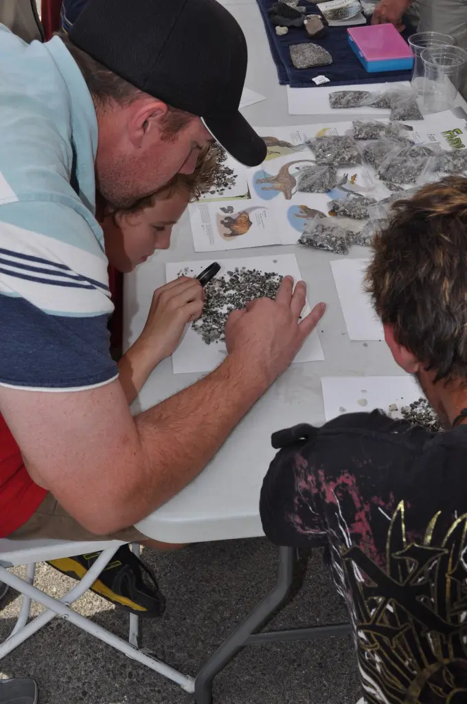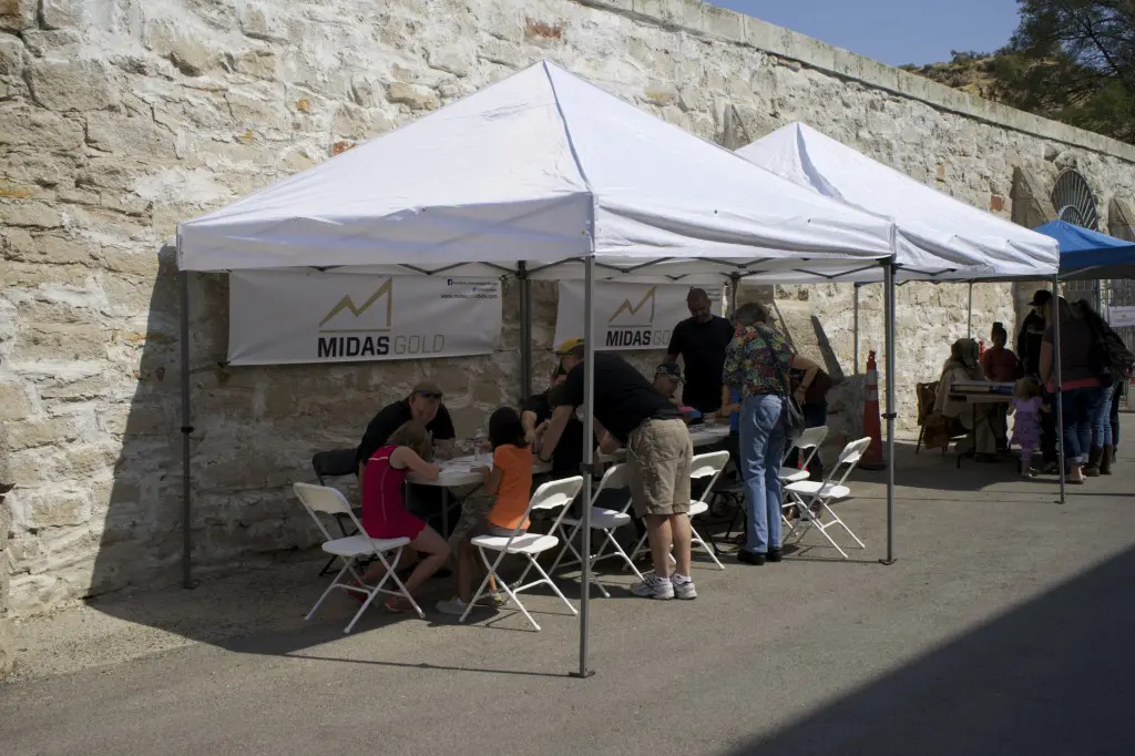 Members of Midas Gold’s Boise team, Ken Assmus, Todd Drage, Sam Reid and Jeff Root, participated in the Idaho Museum of Mining and Geology’s “Rock Party” event on Sunday September 14. In addition to the many other hands-on activities for kids, the Midas Gold team conducted a fossil hunt. Everybody got their own bag of phosphate fossils that they could search through and identify different types of shells, shark teeth, coral and other fragments from the ocean floor from more than 15-20 million years ago.