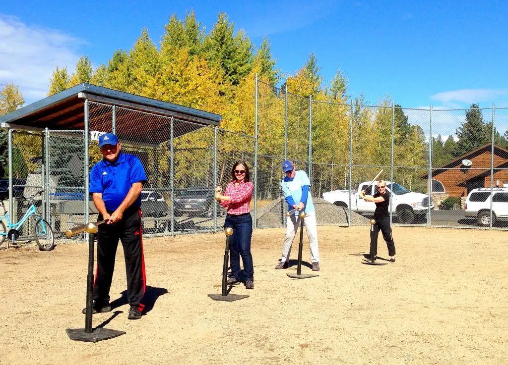 On September 27, more than 30 community members came out to celebrate the project at an official groundbreaking ceremony and barbeque. At the event, McCall Mayor Jackie Aymon, the vice president of Midas Gold and other city officials used golden bats to hit a few last softballs at Fairway Park before work started.