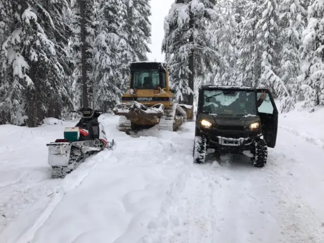 In October, our team stepped up when an unexpected winter storm left two different groups of hunters trapped in the back country. Blue skies turned into seven-foot snowdrifts and the roads became impossible to travel. As soon as we heard people were trapped, we fired up our snowplow and backhoe and got to work clearing a path so everyone could make it off the mountain. It took us more than 24 hours to get all 13 hunters home safely but our team didn’t stop until they were reunited with their families.