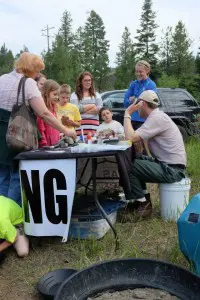 On Saturday, July 12, 2014, Perry Ponshock, Belinda Provancher and Bryan Hardel were involved with a children’s outreach program at the Little Ski Hill just west of McCall. The event was hosted by the Payette Children’s Forest. This event brings all sorts of businesses and outreach agencies together to put on an educational event for children. This is the second year Midas Gold has participated.