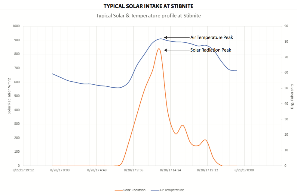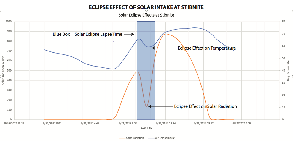 At the Stibnite Gold Project site, we use solar panels to power almost all of our operations at the site. The amount of energy we generate in a day is directly tied to the sun. This was evident during the recent solar eclipse.