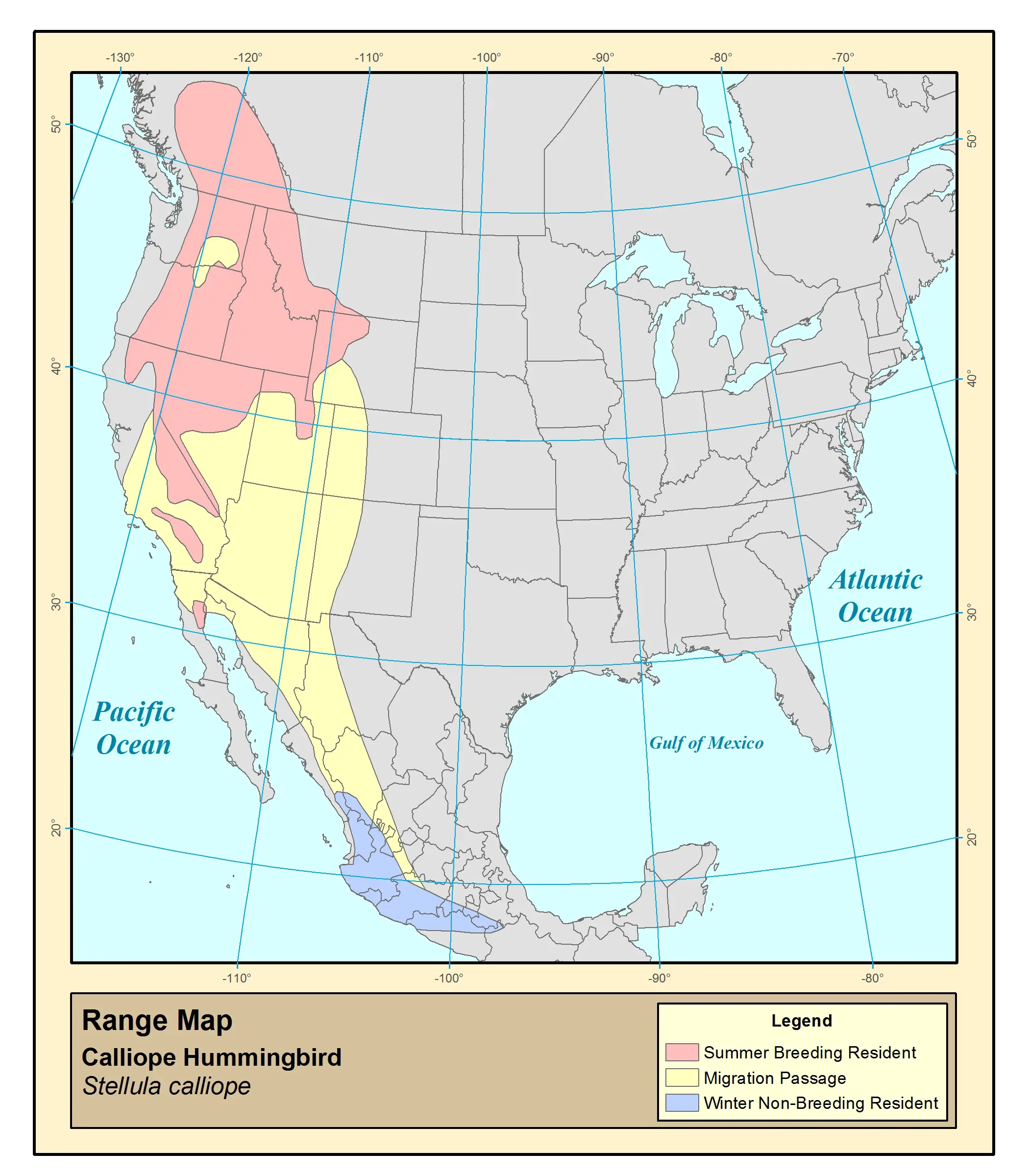 As a bird enthusiast, I eagerly await the arrival of the Calliope Hummingbirds in the Pacific Northwest each spring. Weighing 2.5 grams (that is smaller than a U.S. dime), the male Calliope Hummingbird is the smallest bird in North America but is resilient enough to make the journey all the way from southern Mexico.