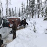 Thursday morning, we learned of another group of four hunters who were trapped on the back side of Monumental Summit. One of the men had texting GPS device and was able to contact his wife. She was directed to contact our office by the Valley County Sheriff’s Office and see if we could help them. After 13 staff hours, our team cleared a path for the group and we just learned that everyone is on their way home to their families.